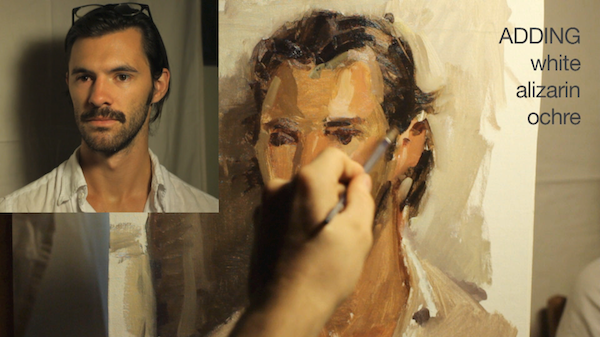 The video documents the creation of a portrait sketch from life. Edited from three hours of footage,